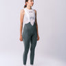 - Un tejido elástico, cálido y transpirable que ofrece una compresión ligera manteniendo la libertad de movimiento.