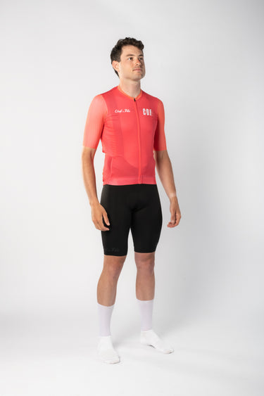 Para ciclistas que buscan rendimiento y las exigencias más técnicas. Este maillot Aero combina un ajuste ceñido con tejido de carbono en la espalda para una mayor transpirabilidad. Nuestro maillot Racing también está disponible en Albaricoque y Blanco.